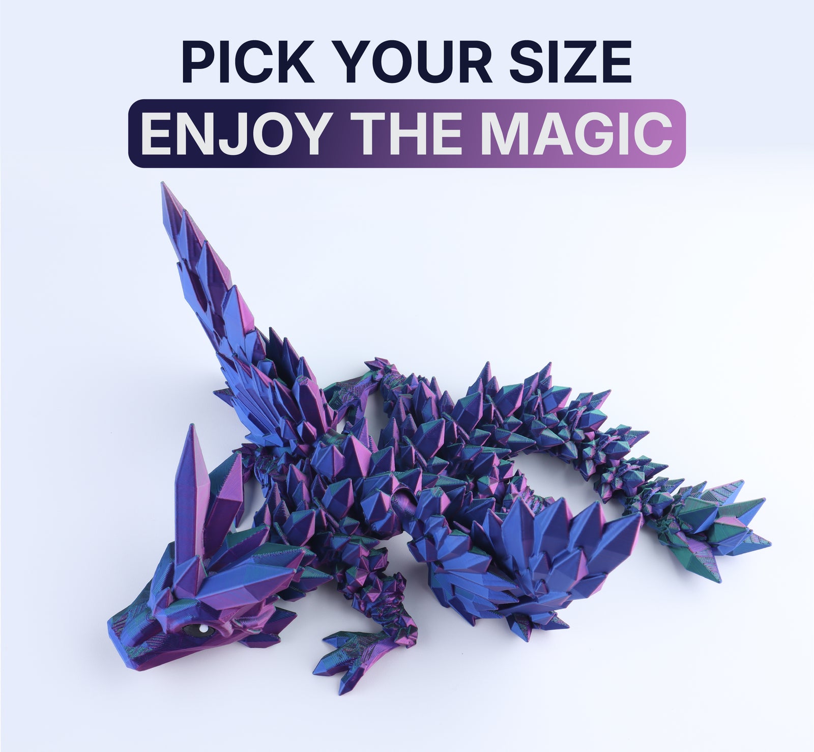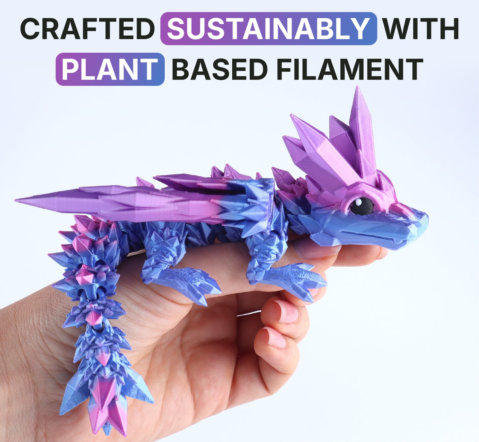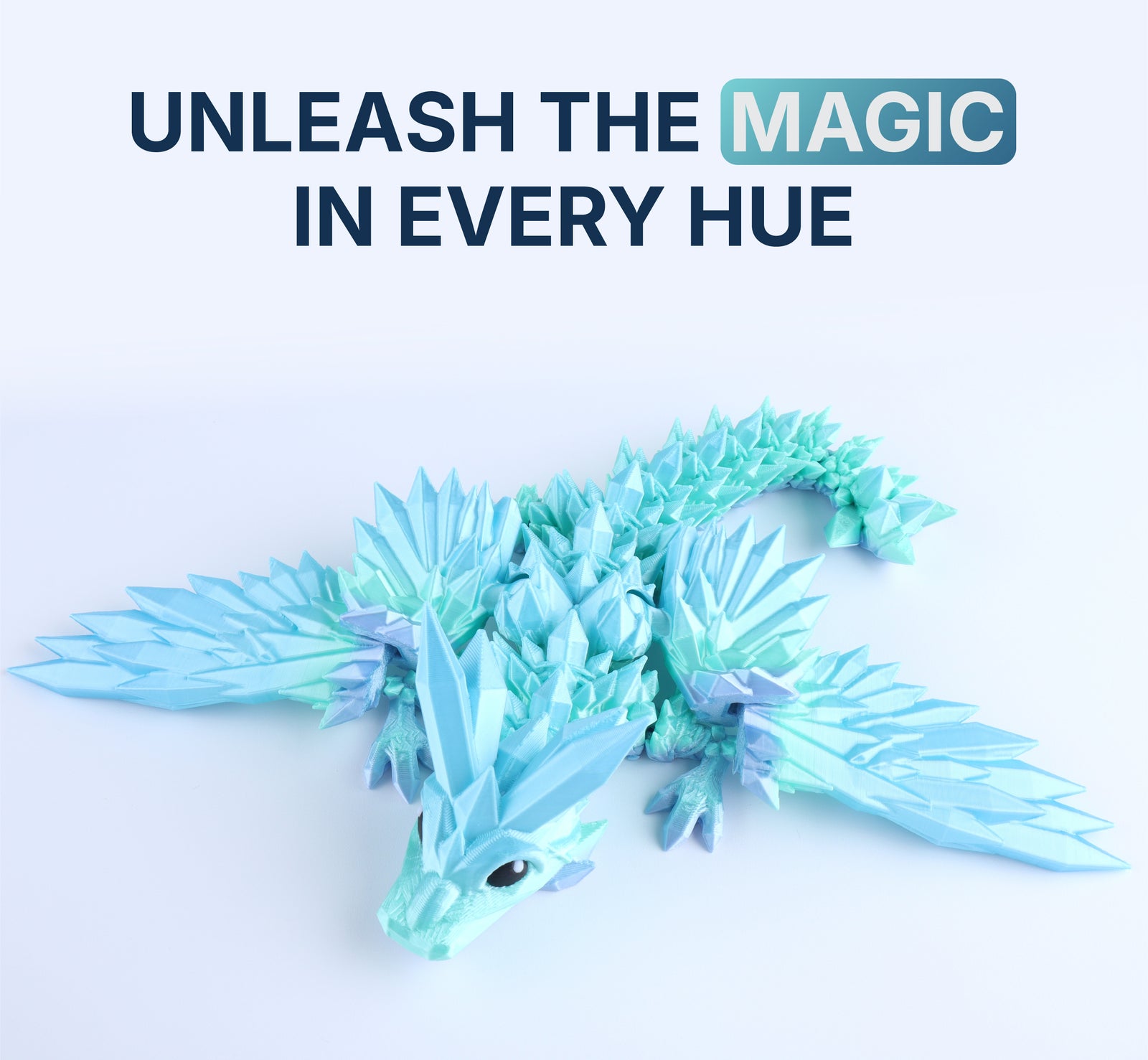 Introducing the Crystal Wing Baby Dragon, a captivating 3D printed collectible that perfectly blends whimsy, color, and movement. With its shimmering crystal-inspired wings and flexible, articulated body, this baby dragon is designed to enchant both young collectors and adults alike.