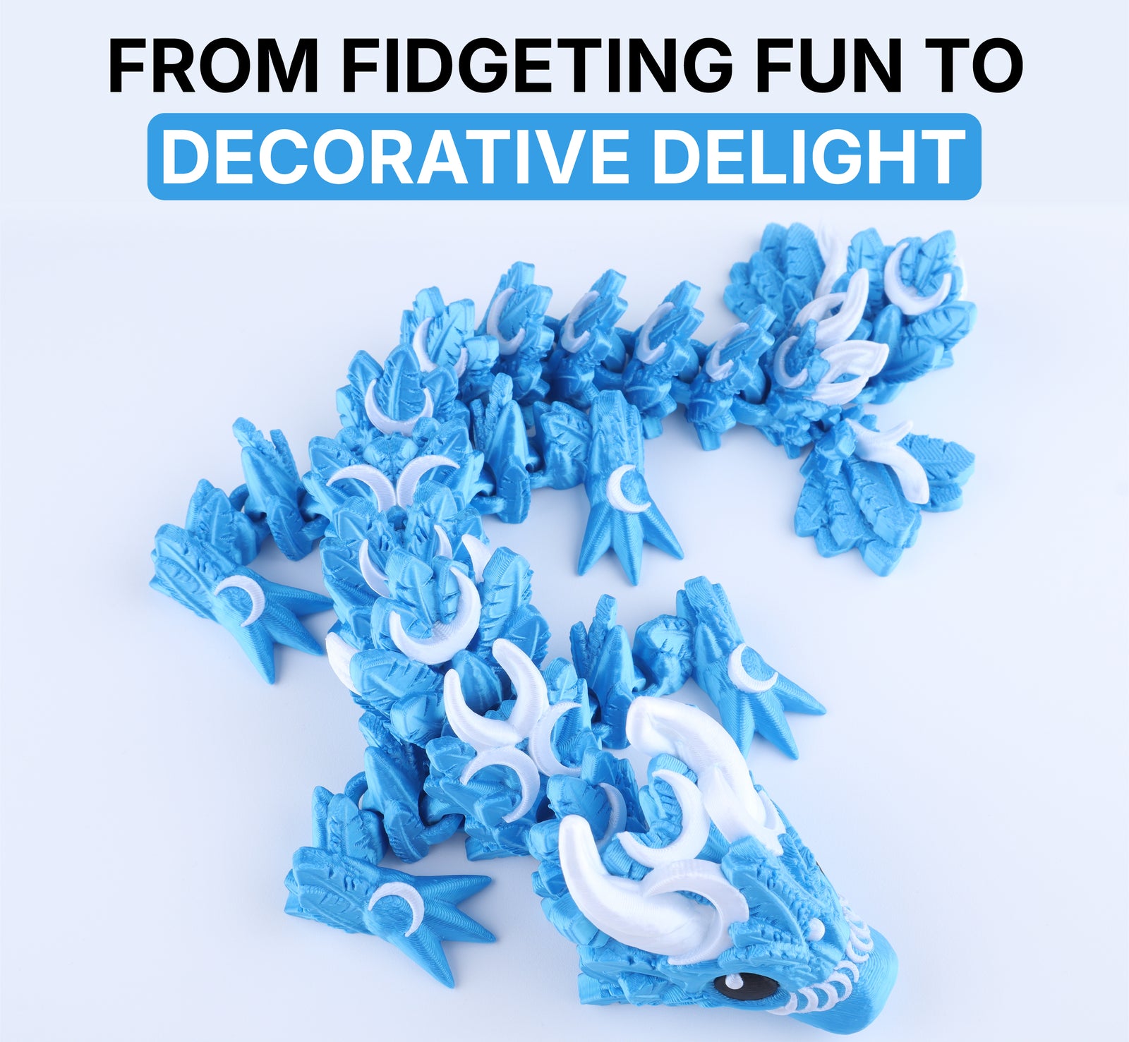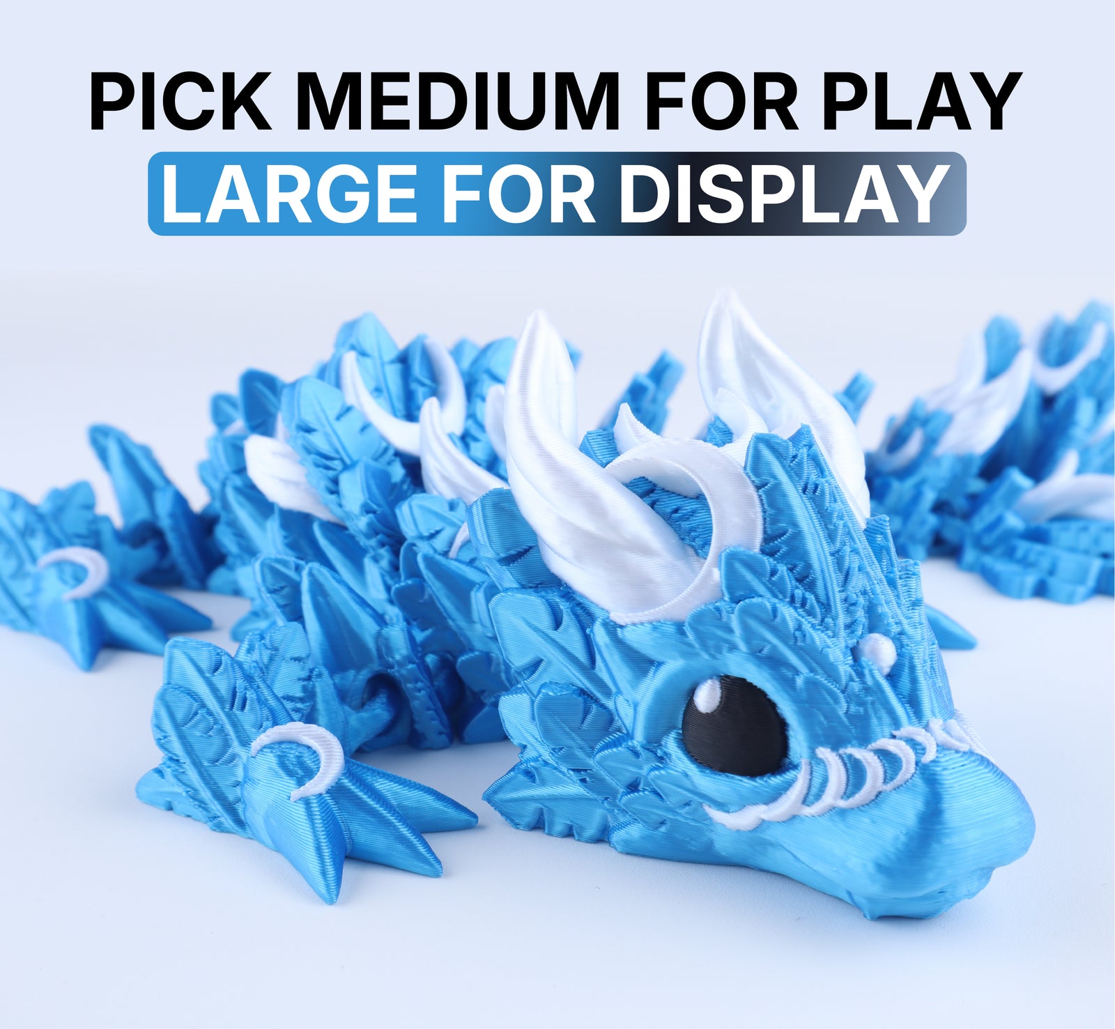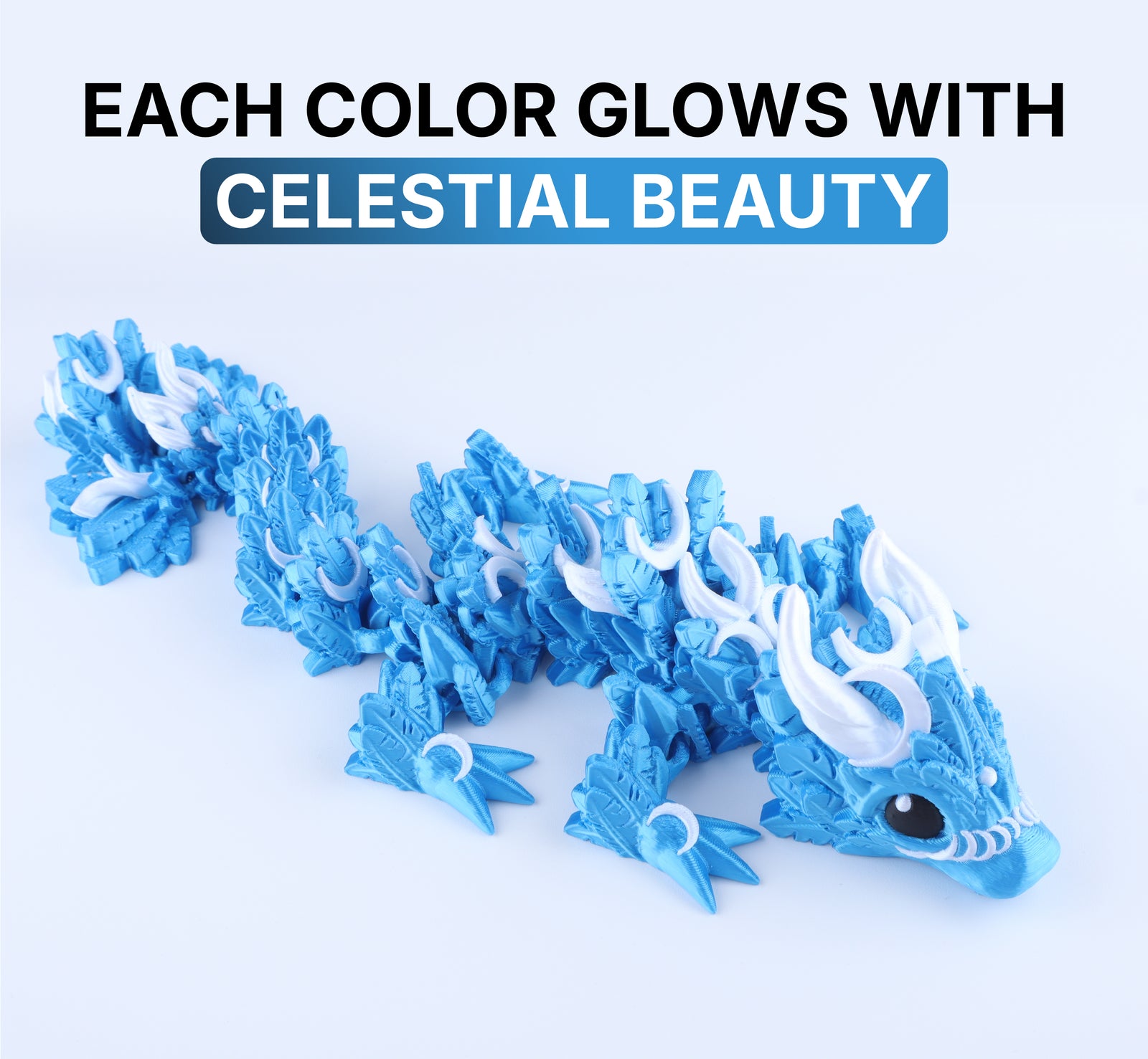 This dragon comes in a variety of soft yet striking colors that give it a magical glow, inspired by the night sky. Its finish is part of the material, so the color stays bright without fading or peeling. Each Lunar Baby Dragon is carefully printed using eco-friendly plastic, gentle on the environment, and built to last.