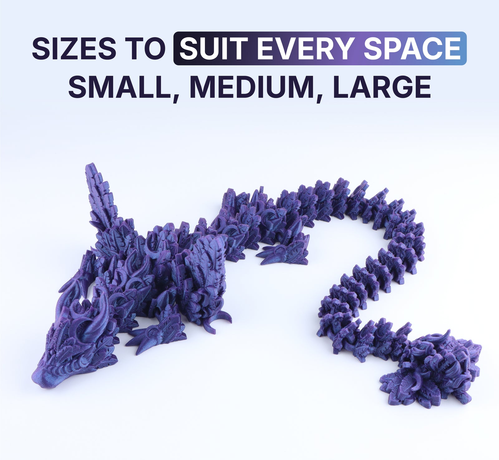Discover the Lunar Wing Dragon, a beautifully crafted 3D-printed dragon designed for play and display. Its flexible wings and smooth joints make it perfect for fidgeting, sensory activities, or simply enjoying its graceful form.