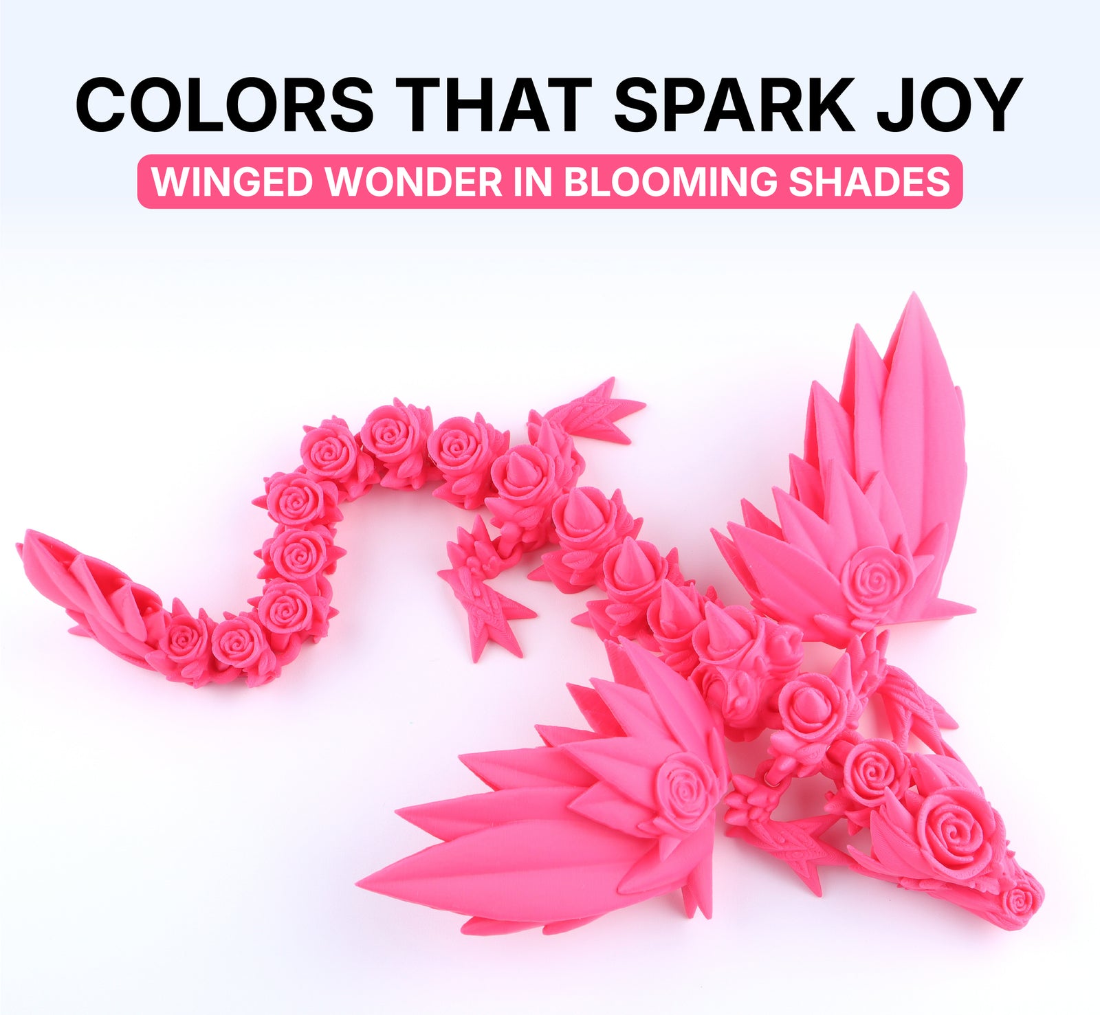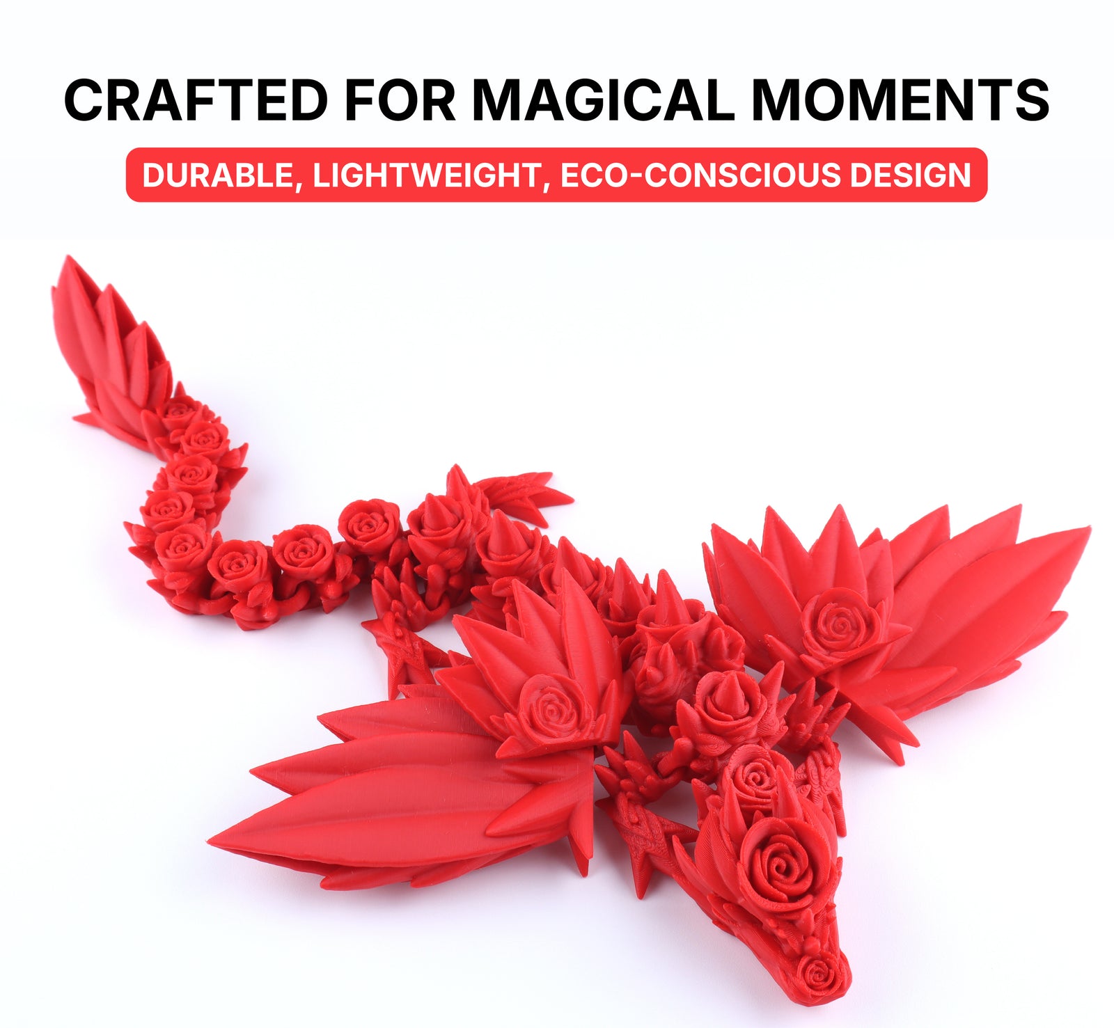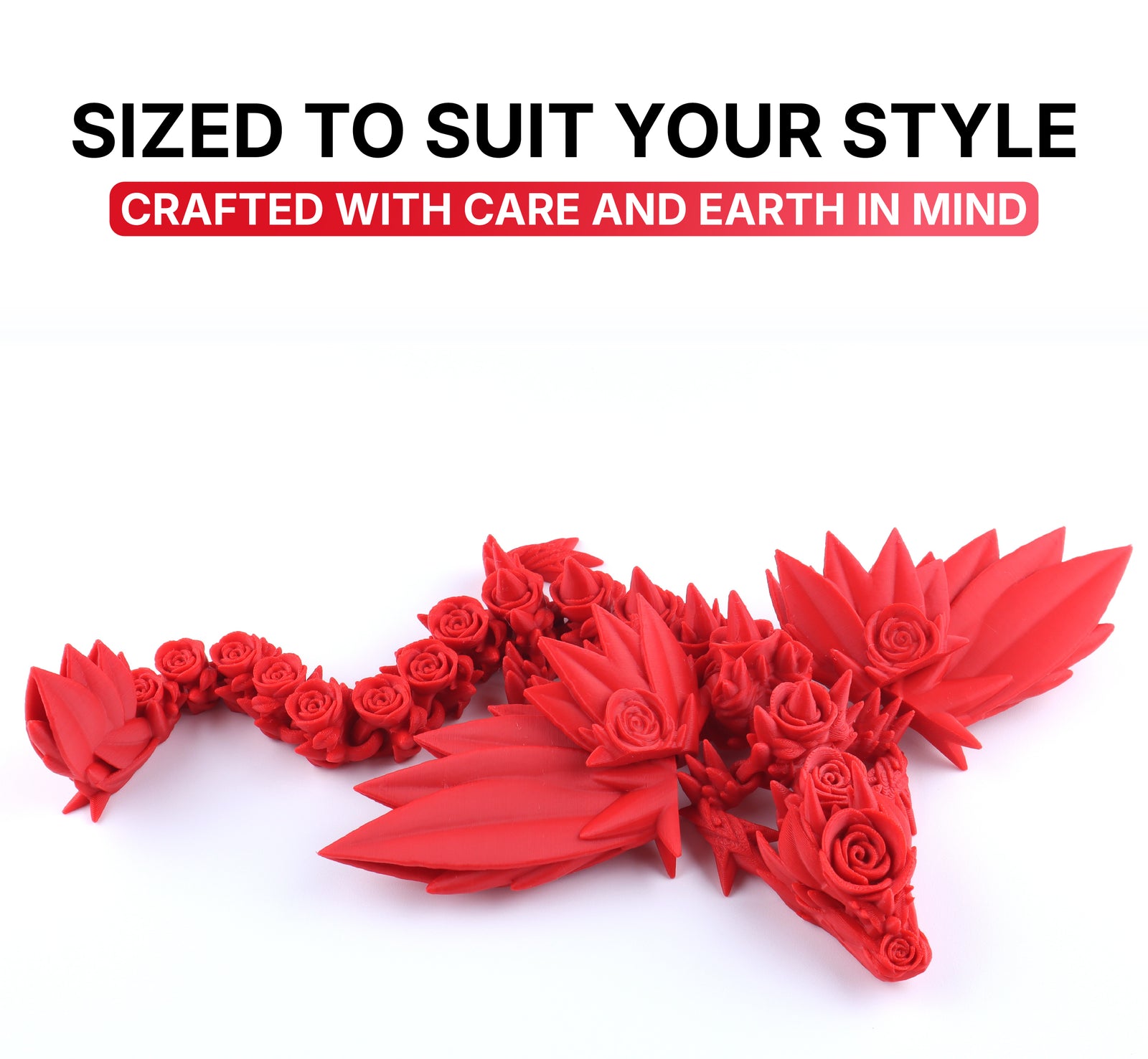 Designed for both display and tactile enjoyment, the Rosewing Dragon features articulated joints allowing gentle movement, perfect for fidgeting or sensory play. Crafted from eco-friendly, biodegradable materials, this dragon reflects a commitment to sustainability without compromising on beauty or durability.