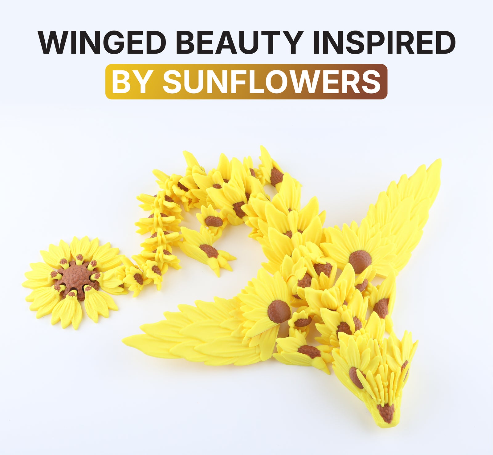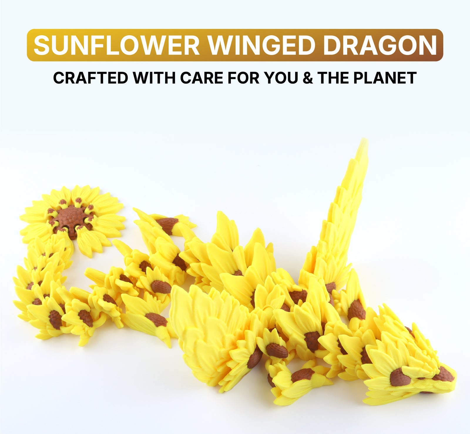 Built with safe, eco-friendly plastic, this dragon offers a guilt-free way to enjoy a lovely piece of art. Its flexible wings add a playful touch, perfect for fidgeting or sensory play. Overall, the Sunflower Winged Dragon combines fun, style, and quality, making it a must-have for collectors and dreamers alike.