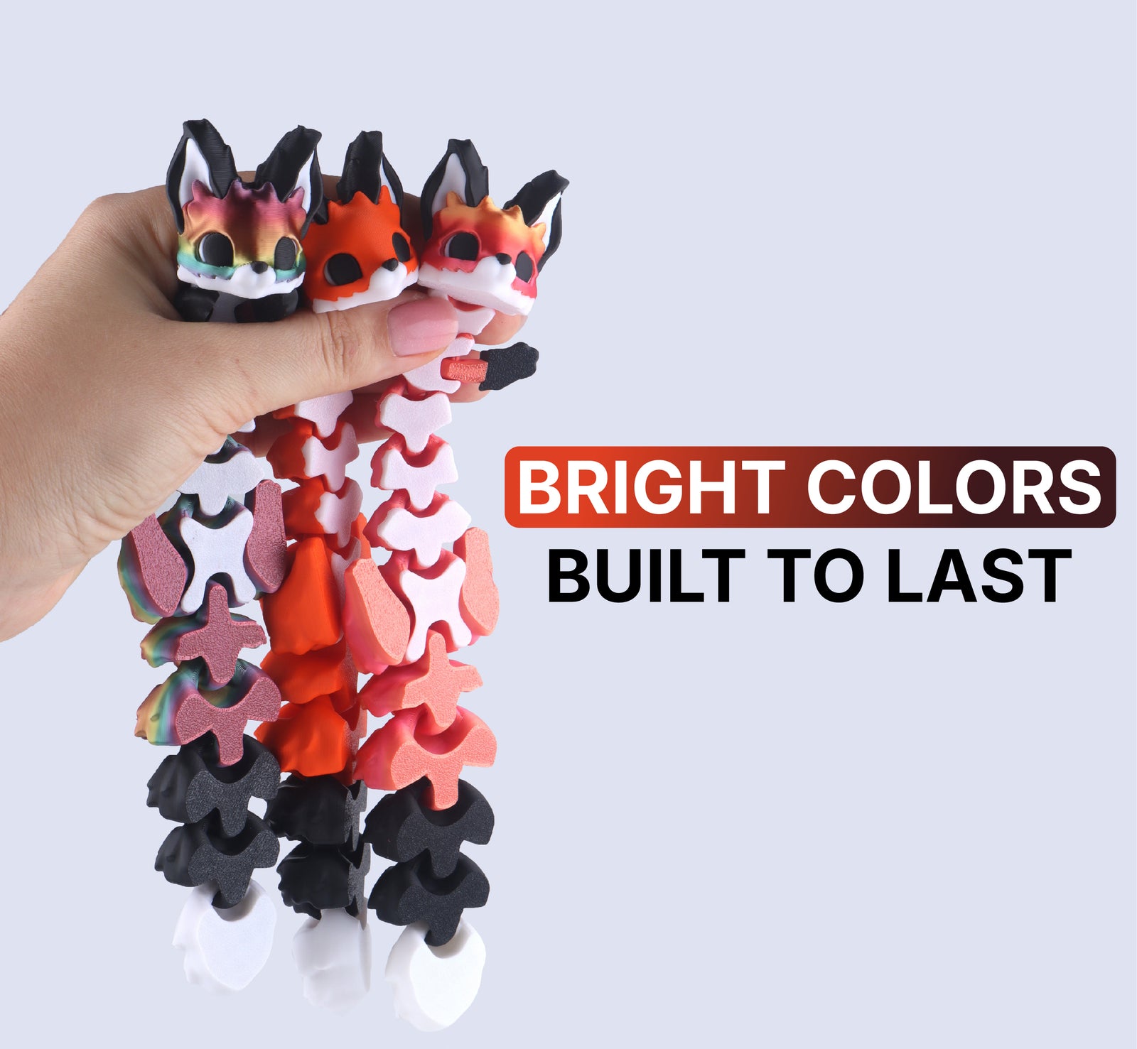 Each item is 3D printed with attention to detail and quality, often fully articulated to bend, twist, or pose in realistic ways. Designs range from whimsical fantasy (crystal dragons) to charming animal-themed figures engaging both children and adults.